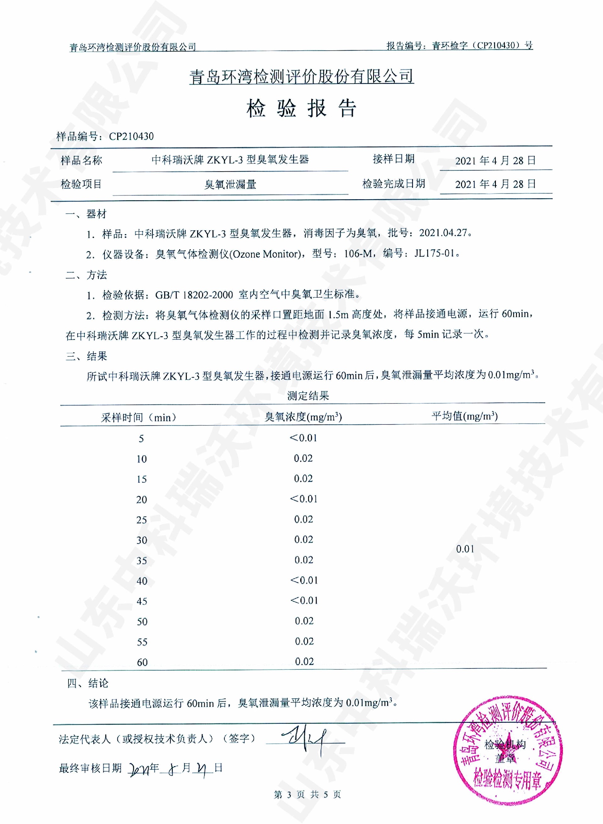醫療污水處理設備檢測報告~臭氧+紫外線消毒