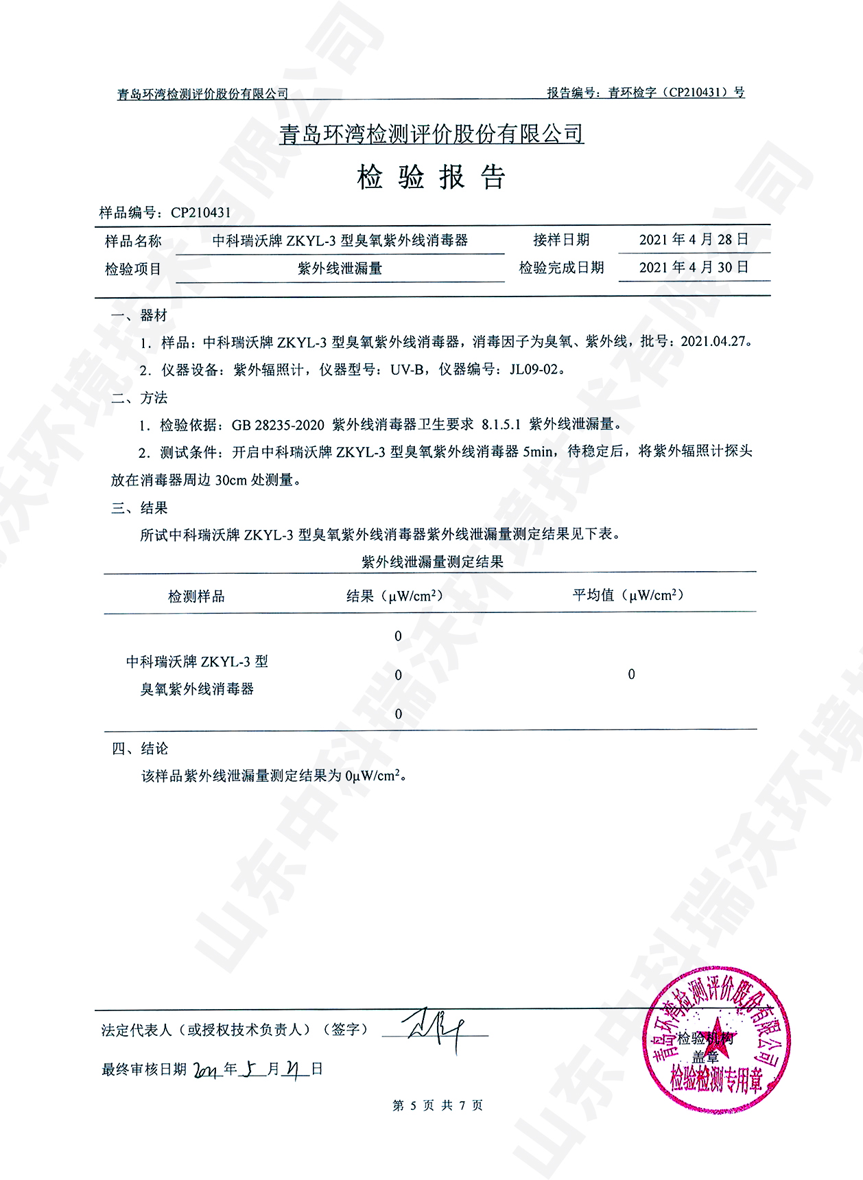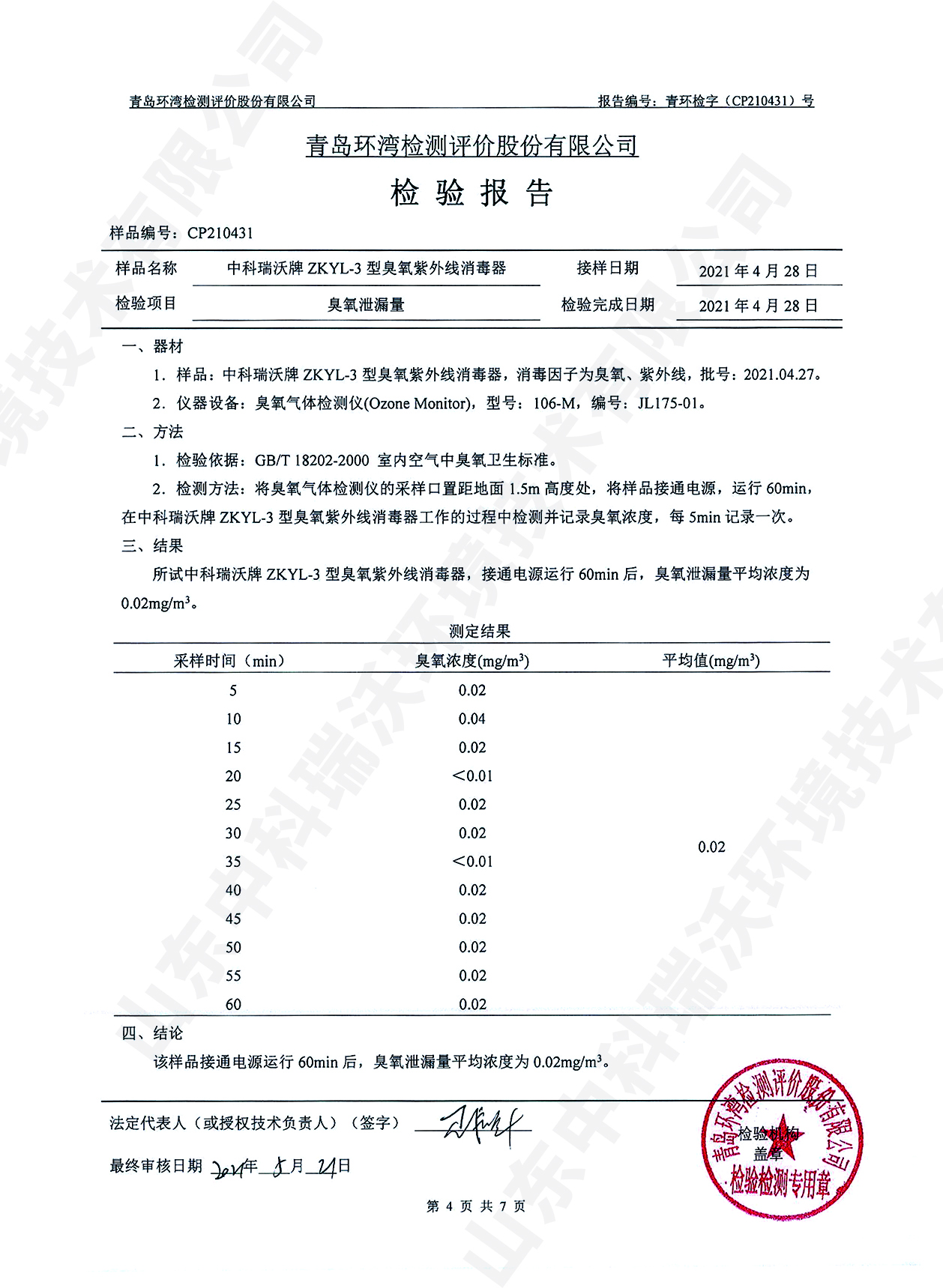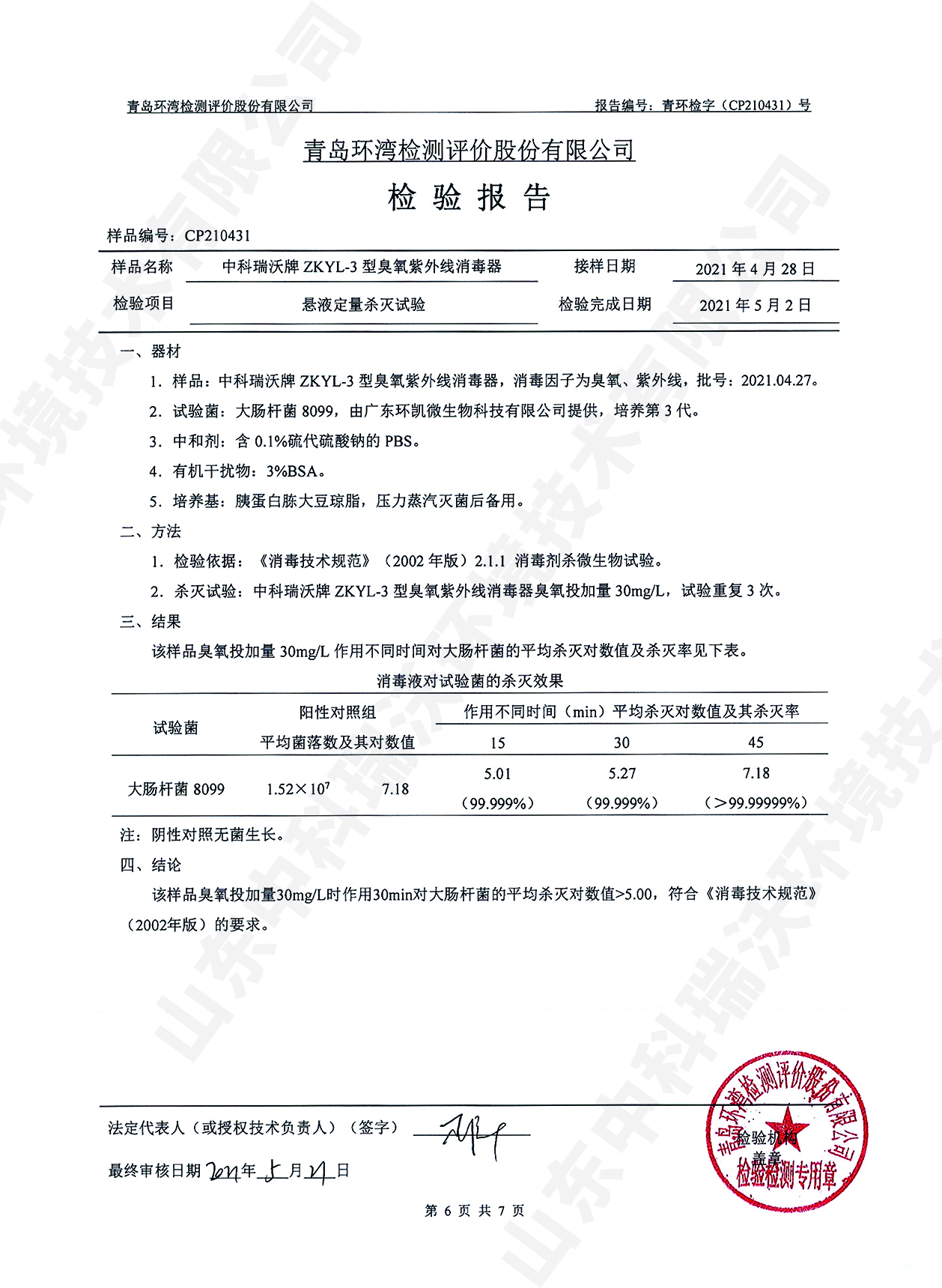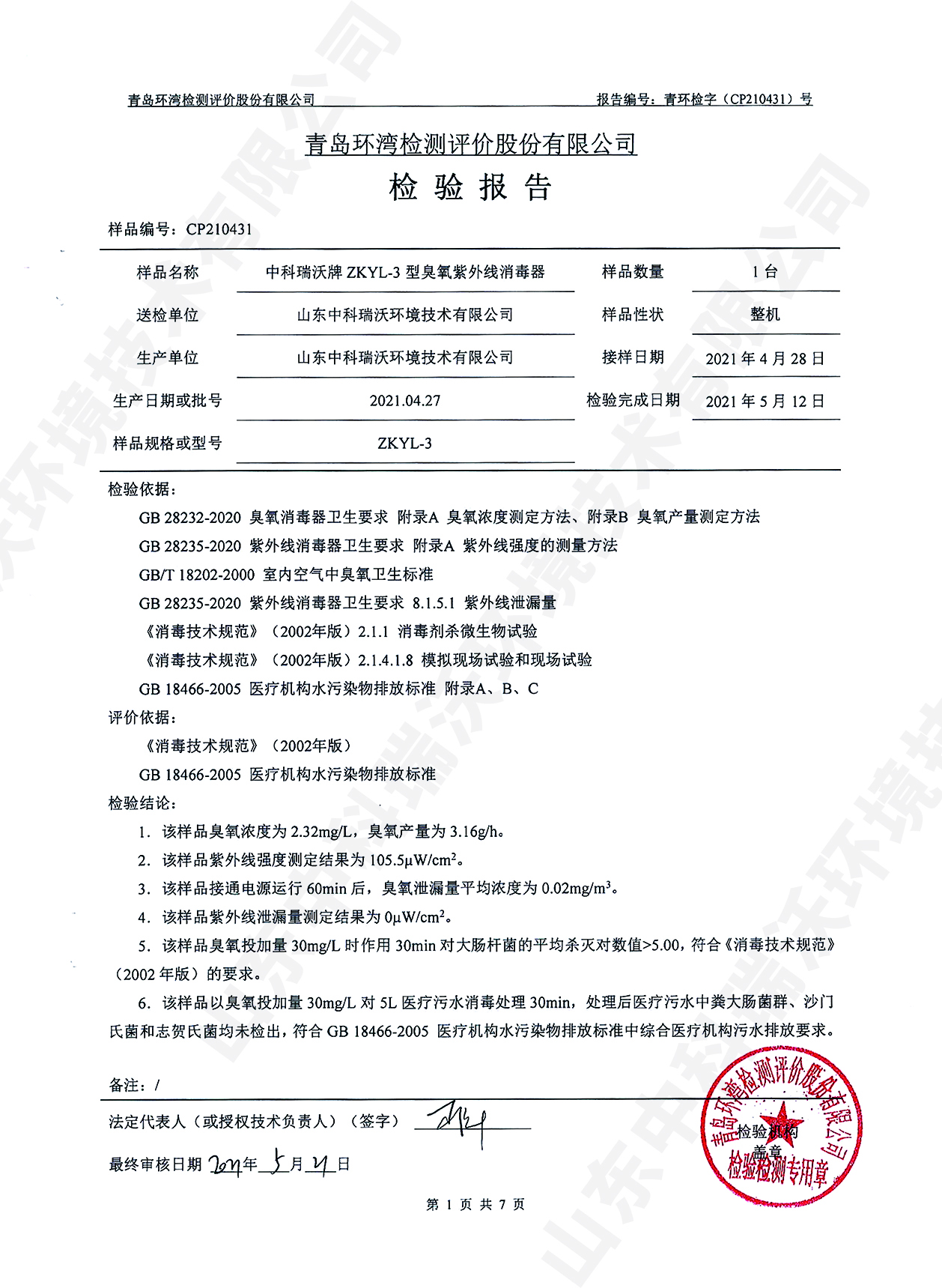 醫(yī)療污水處理設(shè)備檢測(cè)報(bào)告~臭氧消毒