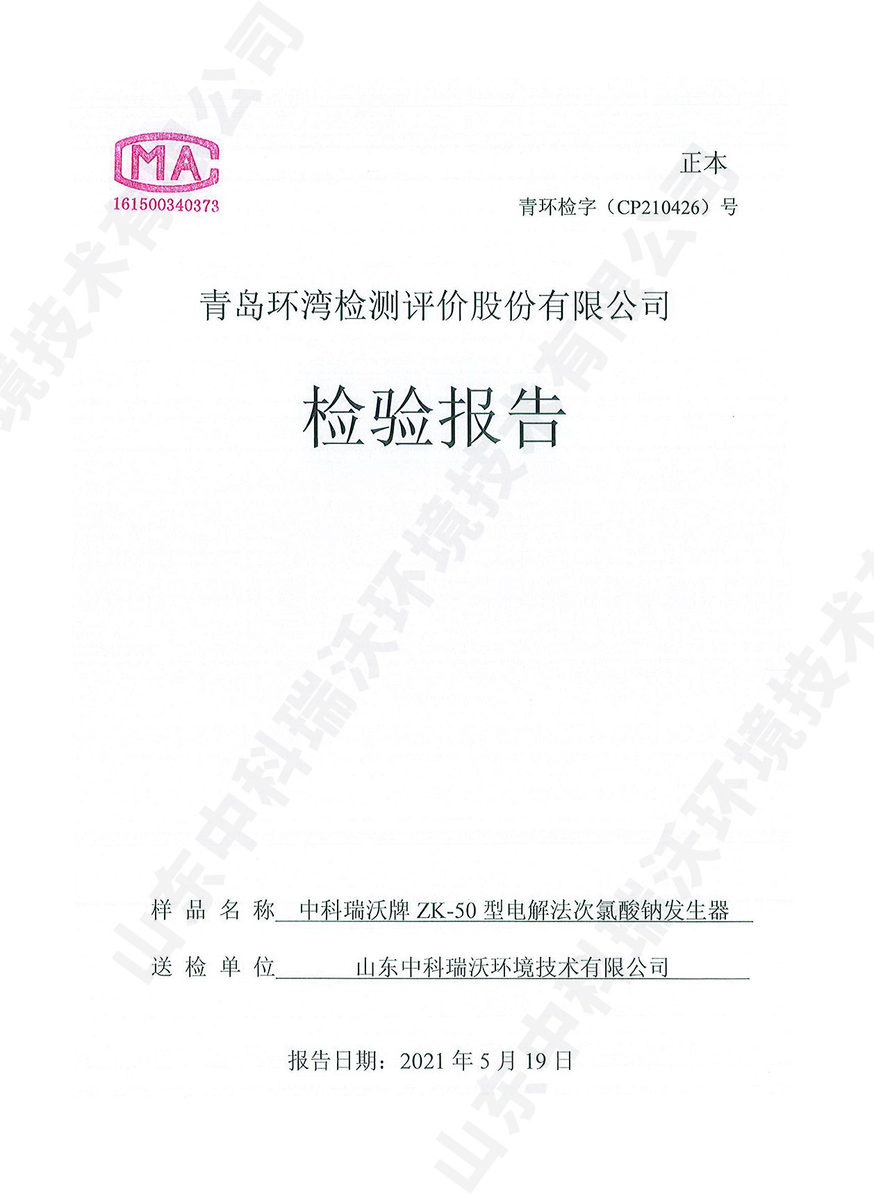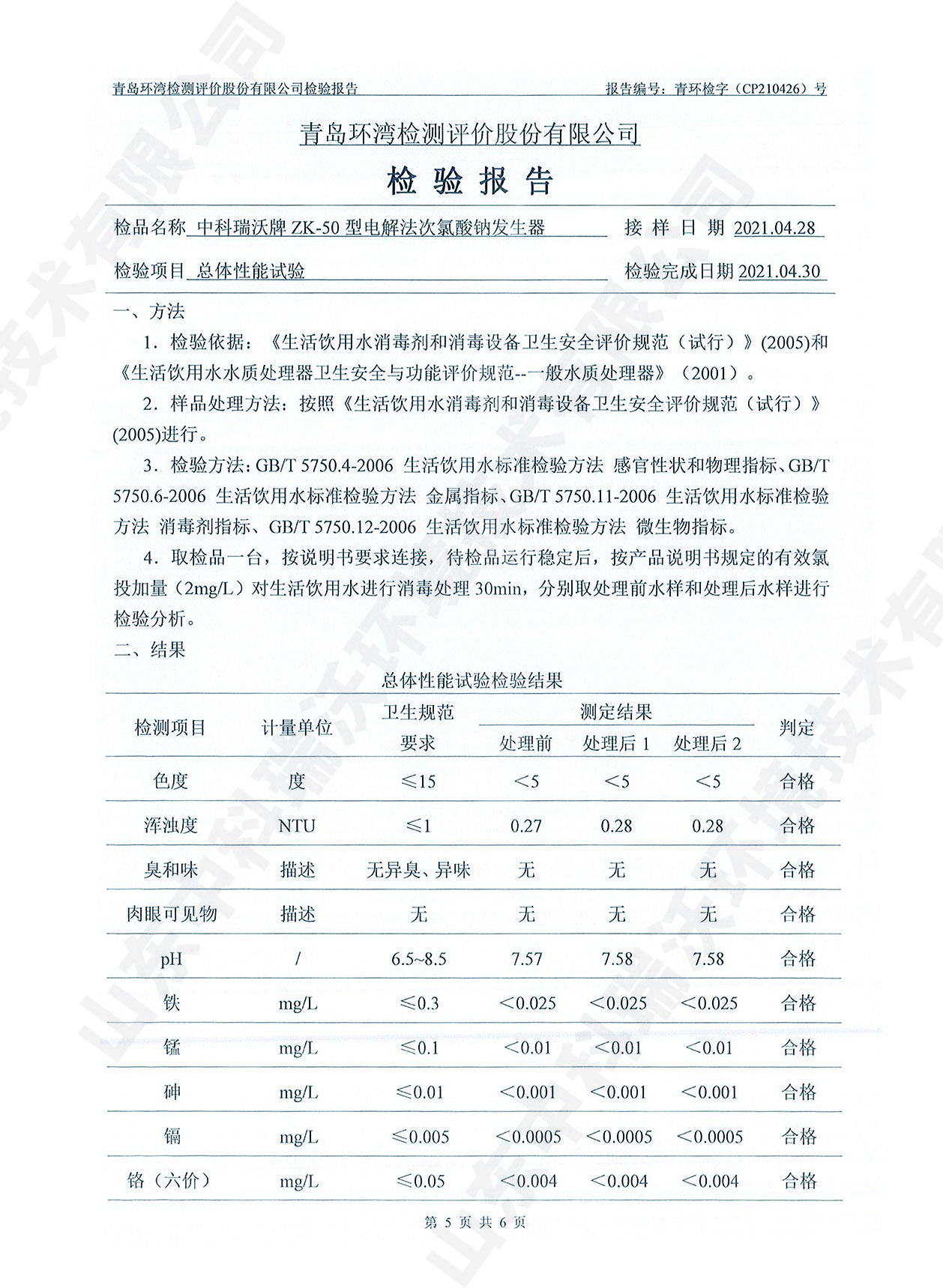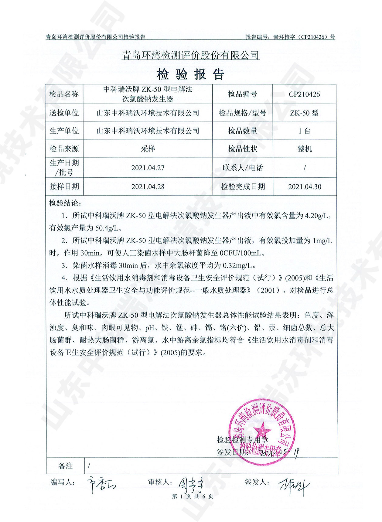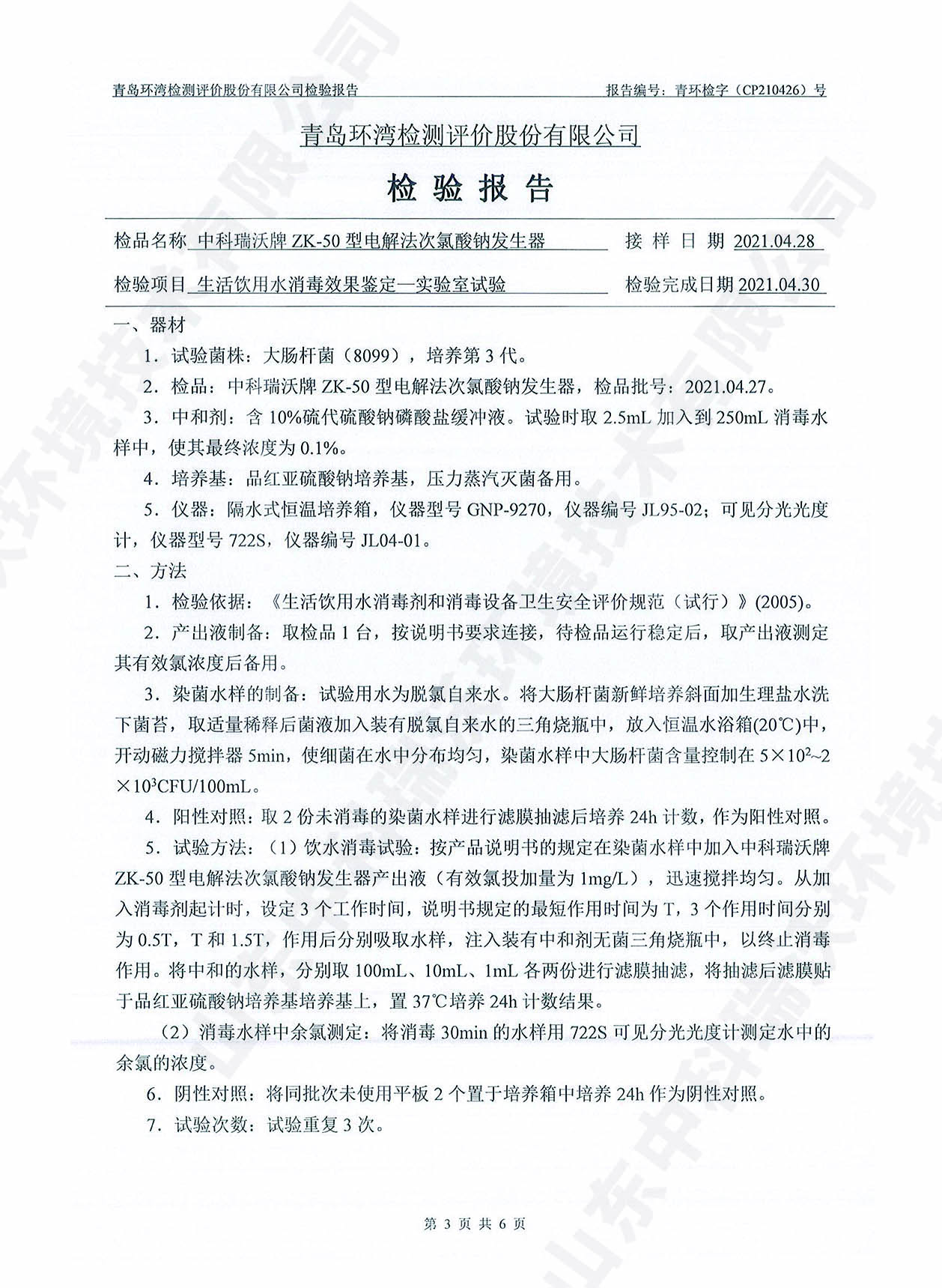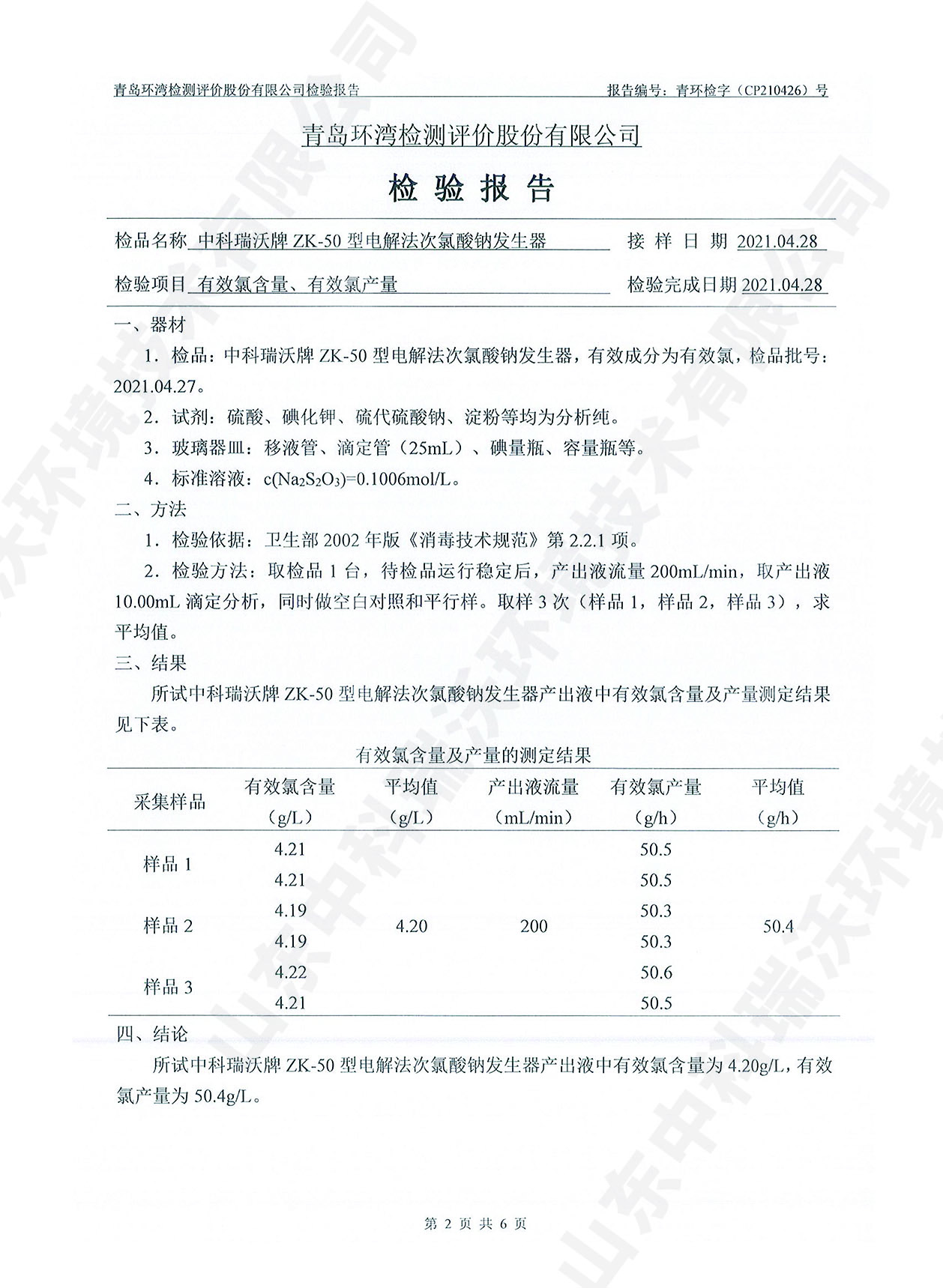 飲水消毒設(shè)備檢測(cè)報(bào)告~次氯酸鈉消毒